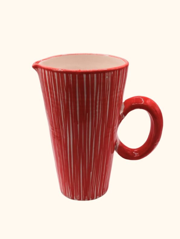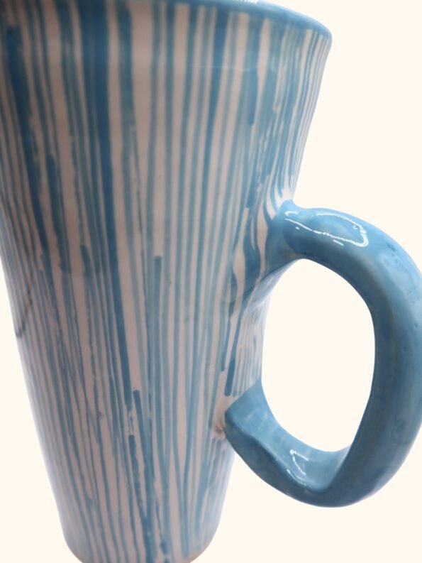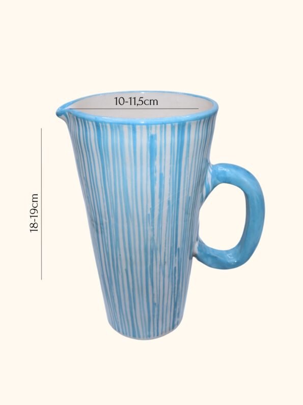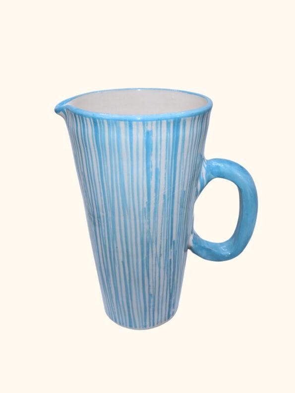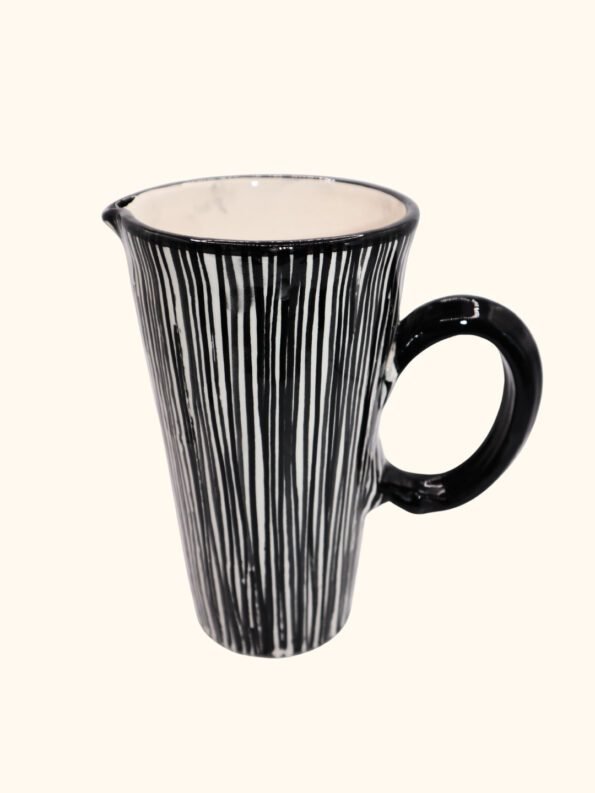 إبريق سيراميك مصنوع يدوياً في المغرب بنمط عمودي ذو لونين أصيل ومرسوم يدوياً، عملي وزخرفي في الوقت ذاته