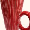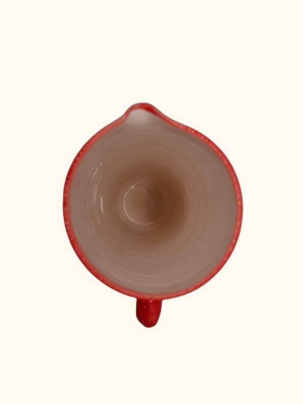 هذا الإبريق المغربي مصنوع بالكامل يدوياً ومرسوم باليد من قبل حرفي مغربي. يتميز بزخارف هندسية باللون الأسود والأحمر والوردي. الزخارف المتكررة مع أشكال سداسية ولمسات نباتية تعطيه أسلوباً مميزاً بطابع بوهيمي شرقي، مما يجعل كل قطعة فريدة من نوعها.