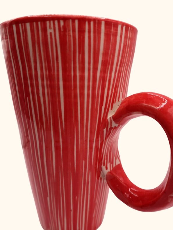 هذا الكوب الخزفي المغربي مصنوع ومُلوَّن يدويًا على يد حرفي مغربي، ويتميز بنقوش متعددة الألوان تشمل الأزرق والبرتقالي والأخضر ودرجات داكنة فوق قاعدة بيضاء. وهو مناسب لاستخدامات عديدة، من القهوة والشاي إلى المشروبات والعصائر وحتى تقديم الحلويات الصغيرة.