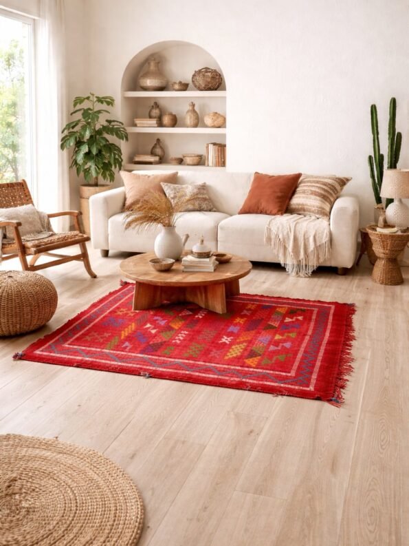 مثالية لغرفة المعيشة أو غرفة النوم أو غرفة الطعام، تُضفي دفئًا وطابعًا مغربيًا أصيلًا على أي مساحة، سواء كانت بوهيمية أو عصرية أو ريفية. كما يُمكن استخدامها كقطعة ديكور جدارية أو غطاء للأريكة أو قطعة زينة خارجية، لتُضفي لمسة مغربية أصيلة على كل ركن.