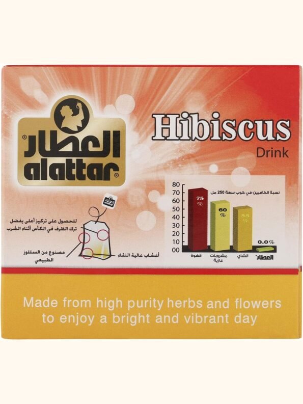 شراب العطار كركديه بوتا طبيعية من أزهار كركديه النيل عالية الجودة، غنية بفيتامين C وأحماض فواكه، بلون روبي عميق ونكهة حامضة فاكهية تنعش الجسم والعقل. مشهور بتعزيز المناعة، التنظيف، تخفيف الزكام، الهضم، الدورة الدموية وصحة القلب، مثالي ساخنًا أو مثلجًا. من الأردن، مع ٢٠٪ إضافي مجانًا، خالٍ من الكافيين للعافية اليومية.