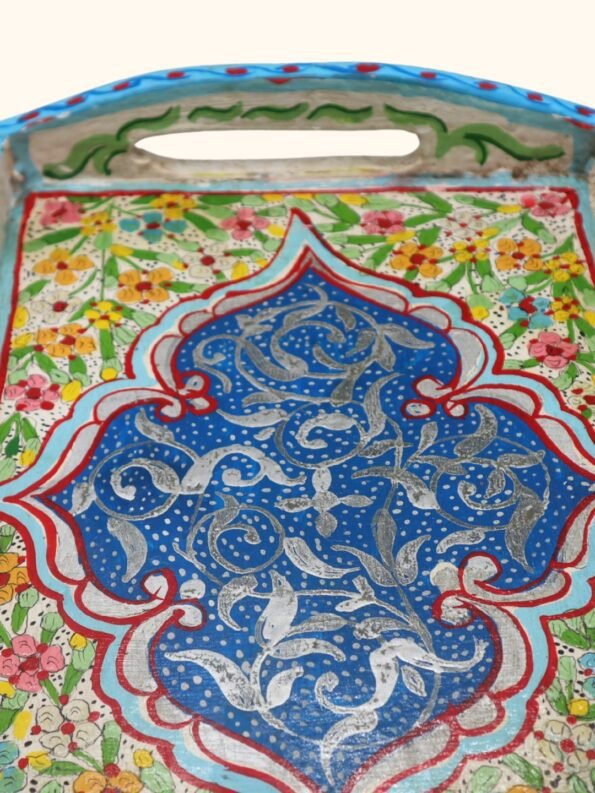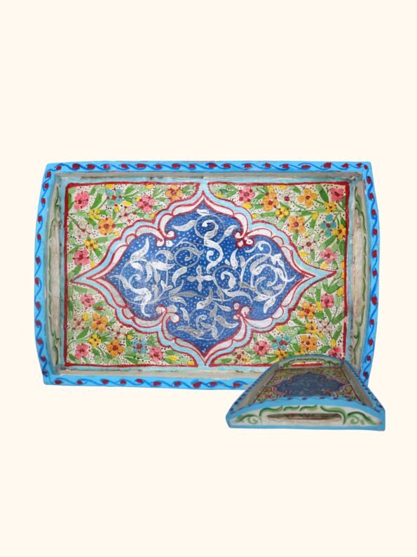 تلعب الصواني من الخشب دورًا أساسيًا في الضيافة العربية والمغربية، حيث تُقدَّم عليها الشاي بالنعناع والقهوة والحلويات للضيوف. وتعكس الزخارف المتقنة والألوان الزاهية التقاليد الزخرفية الإسلامية، وتنقل إلى المنزل أجواء الرياض التقليدية وبيوت المدينة القديمة.