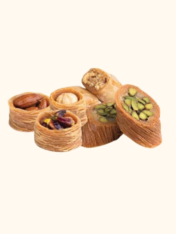 Each piece offers the perfect balance of crisp pastry and rich nut filling, creating a buttery, well‑rounded taste with the distinctive aroma of Middle Eastern syrup.