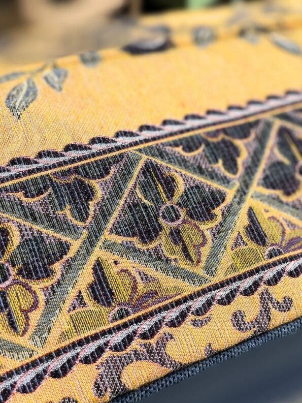 A unique creation from Arabic Hub, inspired by the rich Arab cultural heritage. Decorated with elaborate floral motifs reminiscent of the traditional arabesque of Moroccan riads. The vibrant golden yellow base and deep blue flowers refer to the luxurious fabrics of the Middle Eastern bazaars, symbols of hospitality and timeless elegance of Arab homes.