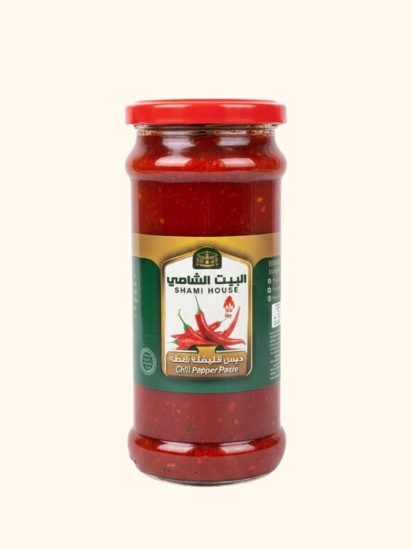 Shami House Chili Pepper Paste is made following an authentic Syrian recipe, providing a rich and spicy flavor. This product brings the “red gold” of Levantine cuisine to your dishes in a convenient glass jar, perfect for enhancing various meals.