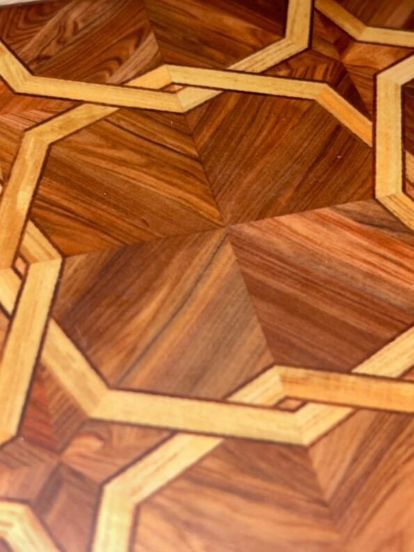 Τα arabesque γεωμετρικά μοτίβα (παραδοσιακή ισλαμική τέχνη από ξύλο με διακοσμητικά ένθετα) αναπαριστούν αρμονία και χειροτεχνία της Μέσης Ανατολής. Ιδανικό για τσάι, καφέ ή oriental γεύματα.