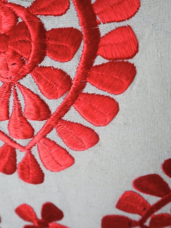 Φυσικό ύφασμα με χειροποίητο κέντημα βαμβακερής κλωστής.