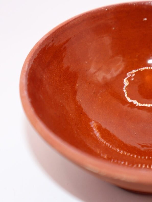 Μαροκινό πιάτο φτιαγμένο από καθαρό πηλό τερακότα, με τον χαρακτηριστικό κόκκινο τόνο του, χειροποίητο και φινιρισμένο για καθημερινή χρήση. Απλό, κλασικό σχήμα με ρουστίκ εμφάνιση, εμπνευσμένο από την πλούσια γαστρονομική κληρονομιά του Μαρόκου.
