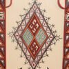 This Moroccan Berber carpet is completely handmade by skilled artisans, and features a red or white background, and colorful geometric patterns in the form of triangles, squares, patterns, and zigzag lines. It adds a bohemian aesthetic touch to this rustic style, making each rug unique.